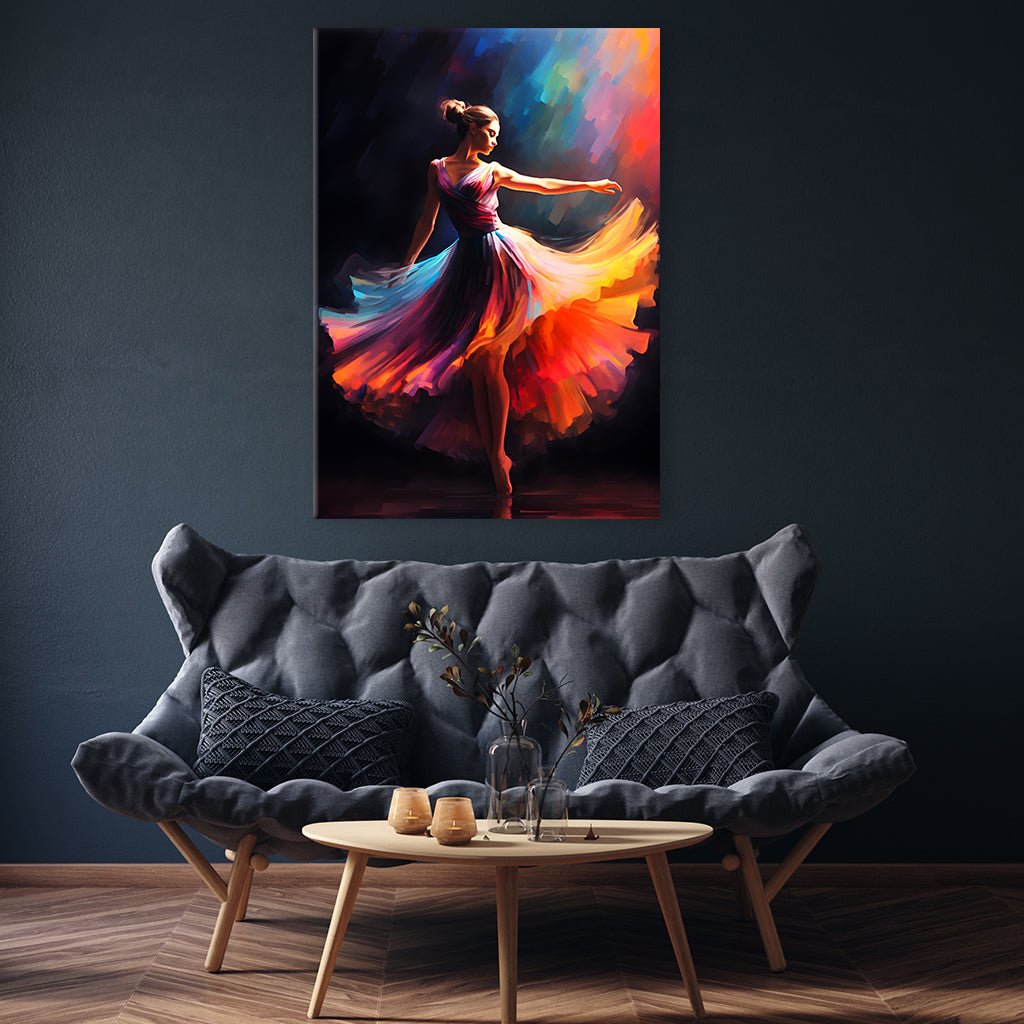 Eine zarte Ballerina in einem wunderschönen bunten Tüllkleid, gemalt im expressiven Acrylstil. Ihre Anmut und Eleganz verschmelzen mit den lebhaften Farben auf der Leinwand und erwecken die Magie des Tanzes zum Leben. Ein besonderer Blickfang für deine Bilderwand im Wohnzimmer, Schlafzimmer oder Eingangsbereich.