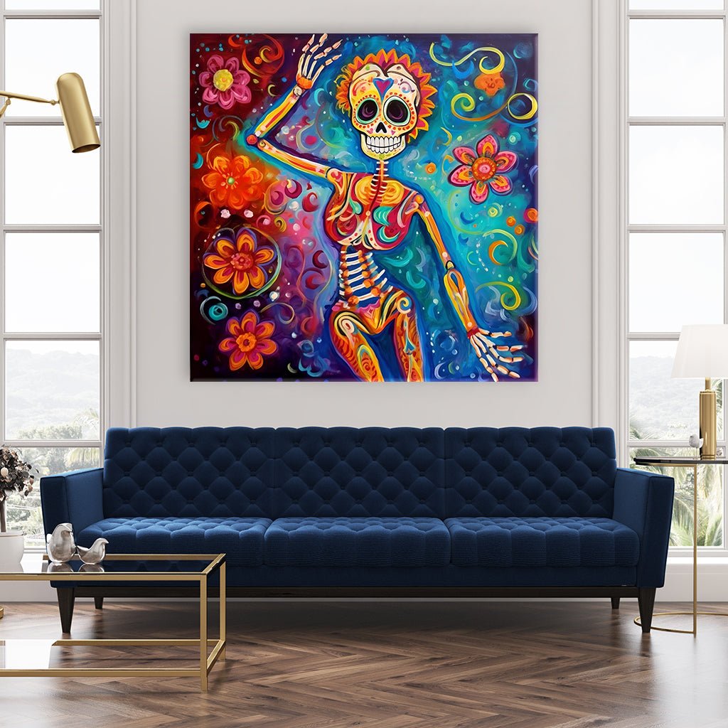 Die lebendige Tradition der "Sugarskulls" und "La Catrina" erstrahlt im charakteristisch bunten mexikanischen Stil. Das Fest der Toten zelebriert das Leben und die Verbindung zu den Verstorbenen. Die fröhlichen Farben und kunstvollen Details dieser Motive ehren die Vergangenheit und erinnern daran, dass der Tod ein Teil des Kreislaufs des Lebens ist. Ein Tribut an die mexikanische Kultur, der in jeder Farbe und Form strahlt.