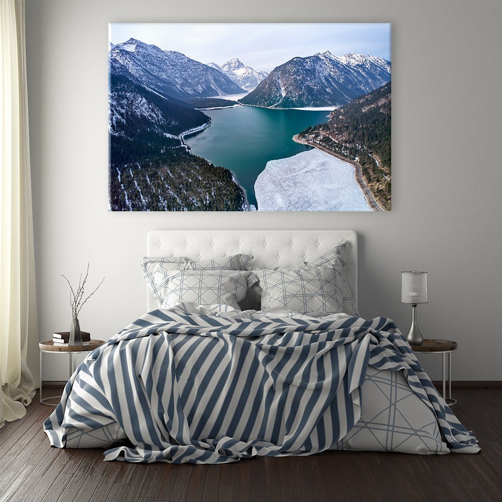Wie wäre es mit dieser tollen Aufnahme bei der du die winterliche Aussicht auf die österreichischen Berge mit Bergsee genießen kannst? Sie sehen atemberaubend aus und geben deinem Raum das gewisse Etwas.