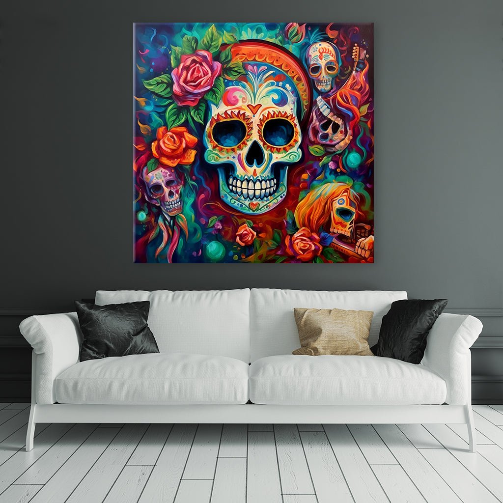 Die lebendige Tradition der "Sugarskulls" und "La Catrina" erstrahlt im charakteristisch bunten mexikanischen Stil. Das Fest der Toten zelebriert das Leben und die Verbindung zu den Verstorbenen. Die fröhlichen Farben und kunstvollen Details dieser Motive ehren die Vergangenheit und erinnern daran, dass der Tod ein Teil des Kreislaufs des Lebens ist. Ein Tribut an die mexikanische Kultur, der in jeder Farbe und Form strahlt.