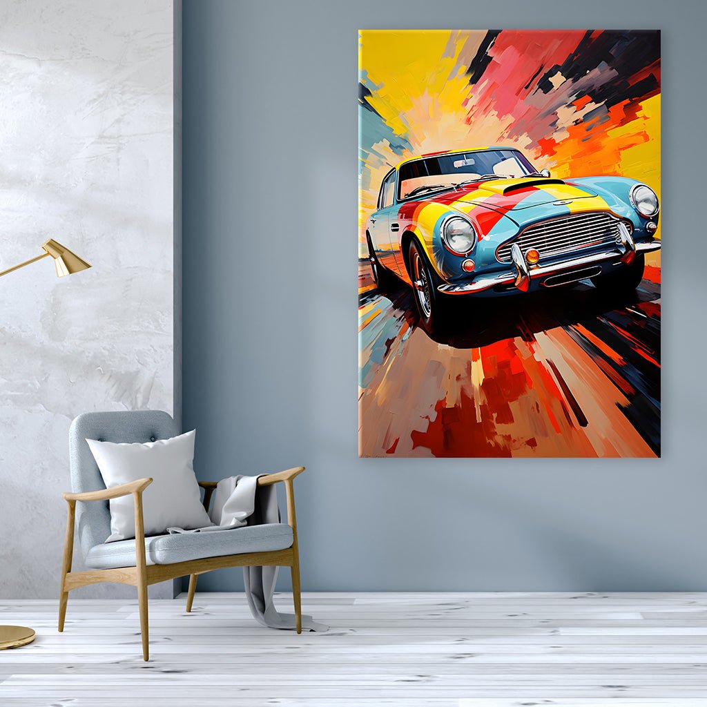 Ein bunter Aston Martin erstrahlt auf einem abstrakten Hintergrund. Die lebendigen Farben und das elegante Design machen ihn zum perfekten Blickfang für jeden Raum. Egal ob im Wohnzimmer, Schlafzimmer oder Flur, dieser luxuriöse Wagen verleiht jedem Raum eine Hauch von Exklusivität und Raffinesse. Die Kombination aus dem atemberaubenden Aston Martin und dem abstrakten Hintergrund schafft eine faszinierende Atmosphäre, die die Blicke auf sich zieht.