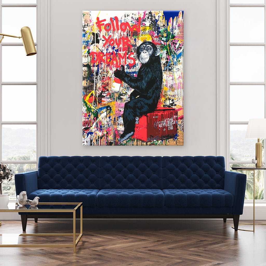 Das Hochformat Motiv im Streetart Stil stammt aus unserer eigenen Affengeile Bilder Kollektion. Dieses wurde von unserer eigenen Mitarbeiterin entworfen.