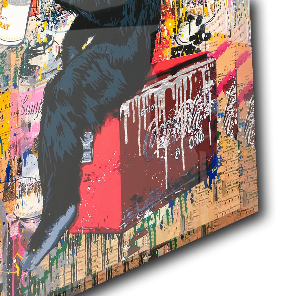 Das Motiv "Follow Your Dreams" von Banksy ist eine beeindruckende und inspirierende Darstellung des bekannten Graffiti-Künstlers. Es zeigt einen Affen, der auf einer roten Coca Cola Kiste sitzt und eine Sprühflasche in der Hand hält. Im Hintergrund ist eine bunter Graffitiwand zu sehen, welche die rebellische und unkonventionelle Natur von Banksy unterstreicht. Der Schriftzug "Follow Your Dreams" ist in Silber gefertigt und verleiht dem Bild eine zusätzliche Aussagekraft und Bedeutung.