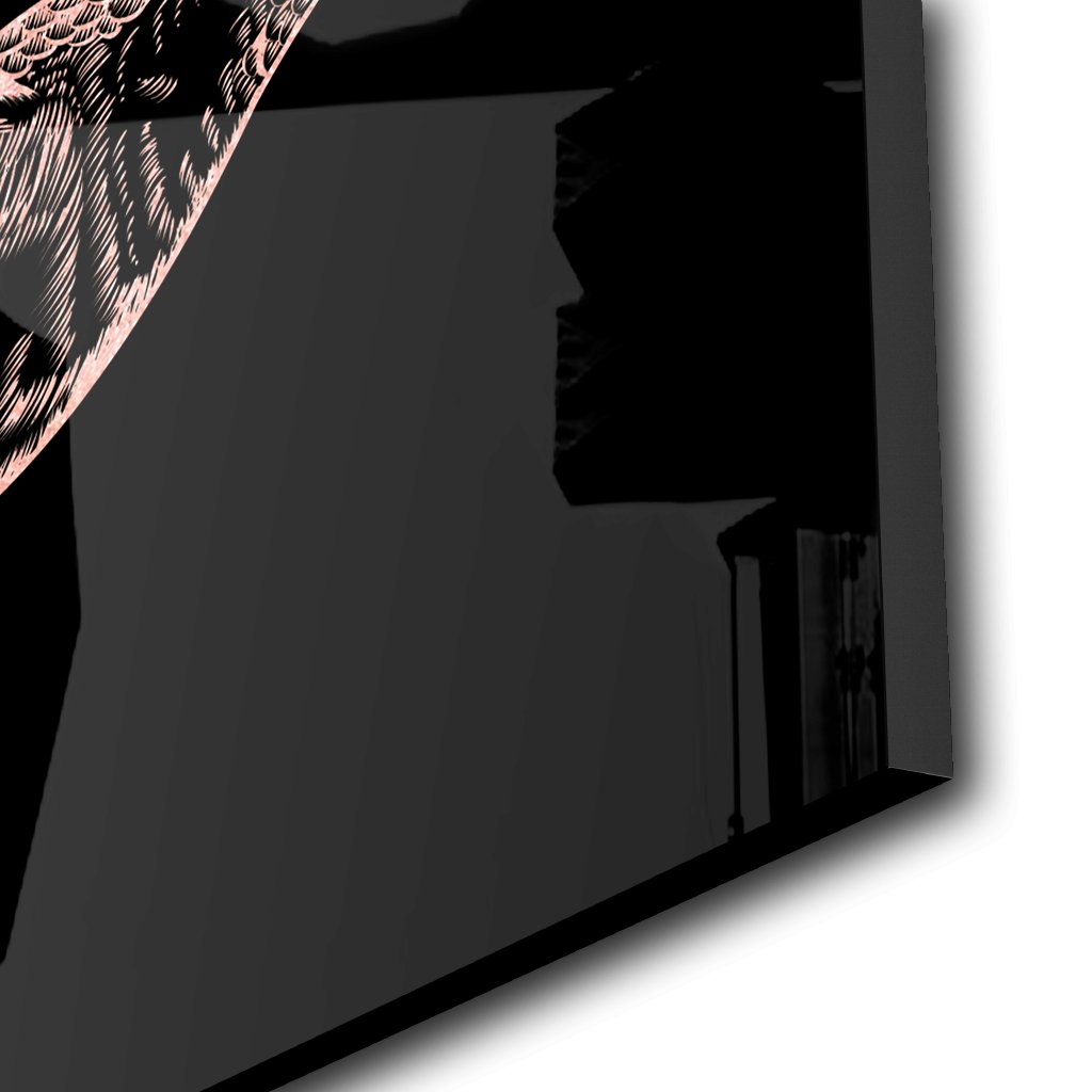 Unser Kolibri wurde mit echtem Roségold auf einem schwarzen Hintergrund von Hand aufgelegt, um es besonders und luxuriös zu gestalten. Die Oberfläche hat einen Hochglanzefekt durch das Acrylglas.