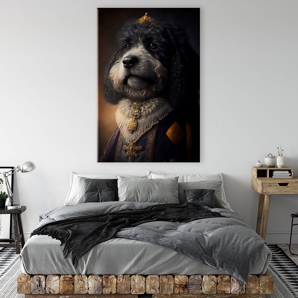 Dieser majestetische Hund trägt seine vornehme Kleidung und seine kleine goldene Krone mit Stolz und Würde. In seinem majestätischen Gewand aus feinen Seidenstoffen und edlen Stickereien erinnert er an vergangene Zeiten des königlichen Hofes. Mit seiner eleganten Haltung und dem sanften Blick strahlt er eine Aura der Erhabenheit und Anmut aus.