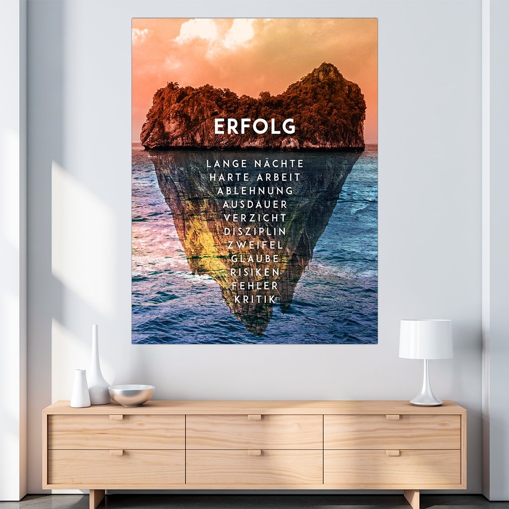 Erfolg ist das positive Ergebnis einer Bemühung. Es ist ein beschwerlicher Weg um oben anzukommen, aber hast du dein Ziel erreicht genießt du ihn im Wohnzimmer oder Schlafzimmer auf deiner Insel des Erfolgs.