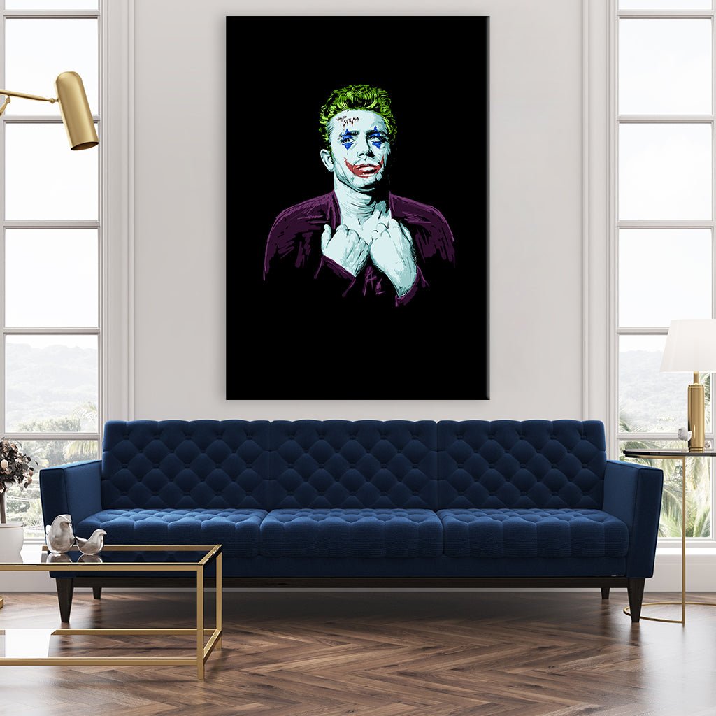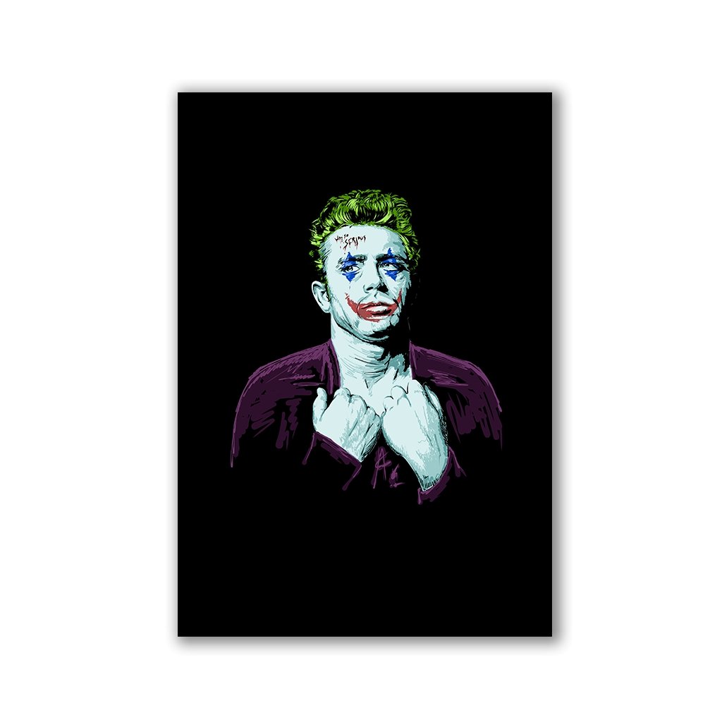 Dieses Motiv zeigt den berühmten US-amerikanischer Theater- und Filmschauspieler James Byron Dean als Joker und ist somit ein besonderer Eyecatcher für dein Bilderwand im Wohnzimmer, Schlafzimmer oder deiner Loftwohnung.