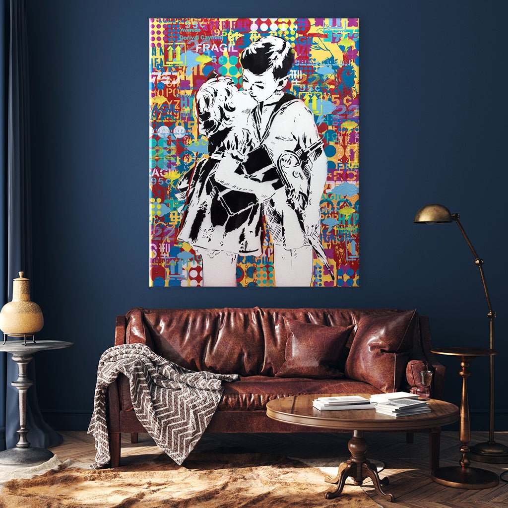 Le motif au format portrait, dans le style du stencil art, provient de notre propre collection d'images Affengeile. Banksy est un artiste renommé de la scène street art et trouve donc également sa place dans notre boutique.