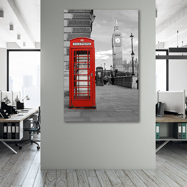 London ist eine sehr beliebtes Ausflugsziele für Städtereisen und auch als Wandbild für deine Wohnung ist es etwas besonderes. Unser Motiv in Schwarz-Weiß zeigt eine alte englische Telefonzelle mit der beliebten Sehenswürdigkeit Big Ben im Hintergrund.