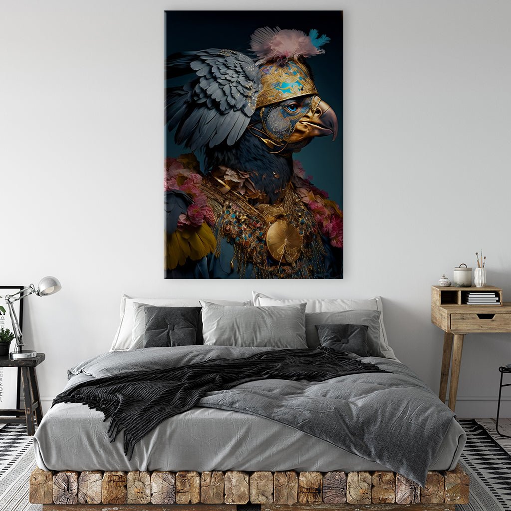 Der Adler der royalen WacheIn in seiner prunkvollen Rüstung gekleidet, thront majestätisch auf seinem Posten. Sein Helm ist mit goldenen filigranen Elementen verziert, die seinen königlichen Status unterstreichen und ihn von anderen Wachen abhebt. Sein stolzer Blick und seine stolze Haltung verraten seine Stärke und sein Engagement für seine königliche Pflicht.