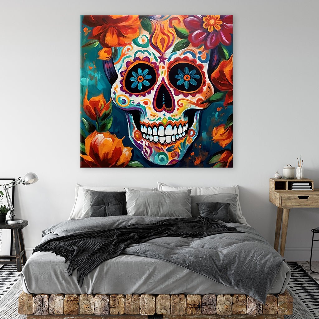 Die lebendige Tradition der "Sugarskulls" und "La Catrina" erstrahlt im charakteristisch bunten mexikanischen Stil. Das Fest der Toten zelebriert das Leben und die Verbindung zu den Verstorbenen. Die fröhlichen Farben und kunstvollen Details dieser Motive ehren die Vergangenheit und erinnern daran, dass der Tod ein Teil des Kreislaufs des Lebens ist. Ein Tribut an die mexikanische Kultur, der in jeder Farbe und Form strahlt.