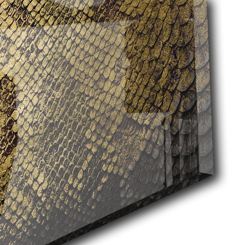 „Snake Skin“ ist ein modernes, hochformatiges Motiv im Schlangenhaut-Design in Gold auf schwarzem Hintergrund. Das verwendete Gold ist echtes Blattgold, das von Hand aufgetragen wird, was es zu einem eleganten und luxuriösen Blickfang macht.