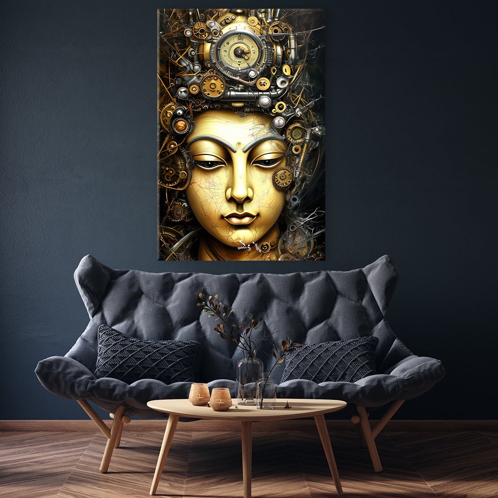 Lasse dich von der faszinierenden Verschmelzung von Tradition und Innovation in diesem einzigartigen Motiv inspirieren. Ein thailändischer Buddha, umgeben von einer Aura des Friedens und der Gelassenheit, wurde mit Steampunkelementen gestaltet. Der Buddha erstrahlt in seiner ikonischen Haltung, während er von Uhrwerken, Zahnrädern und metallischen Elementen umgeben ist. Diese Steampunkelemente verleihen dem traditionellen Motiv eine unerwartete Wendung und schaffen eine beeindruckende Kombination aus Antike und Futurismus.
