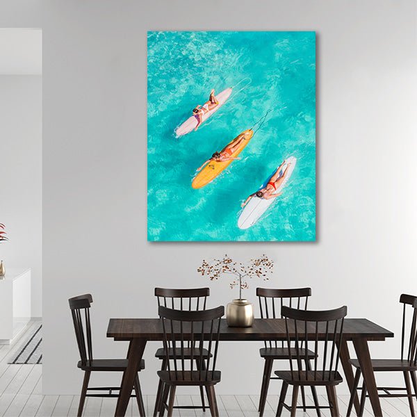 Die Hochformat Fotografie ist von unserer australischen Künstlerin Jessica Loiterton erstellt. Die begeisterte Luftbildfotografin hat einen Stil mit knalligen Farben und einzigartigen Surf-Aufnahmen aus einem niedrigeren Winkel entwickelt, bei denen man das Gefühl hat, auf der gleichen Welle zu sein.